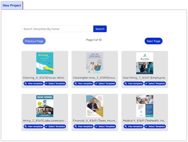 - Then, after choosing your desired postcard format, you’ll be able to search through various design templates using keywords like “food” or “real estate” to help filter results and find the best design for your business. Having templates highly tailored to your specific industry in terms of headings, graphics, and overall design is a huge time-saver.